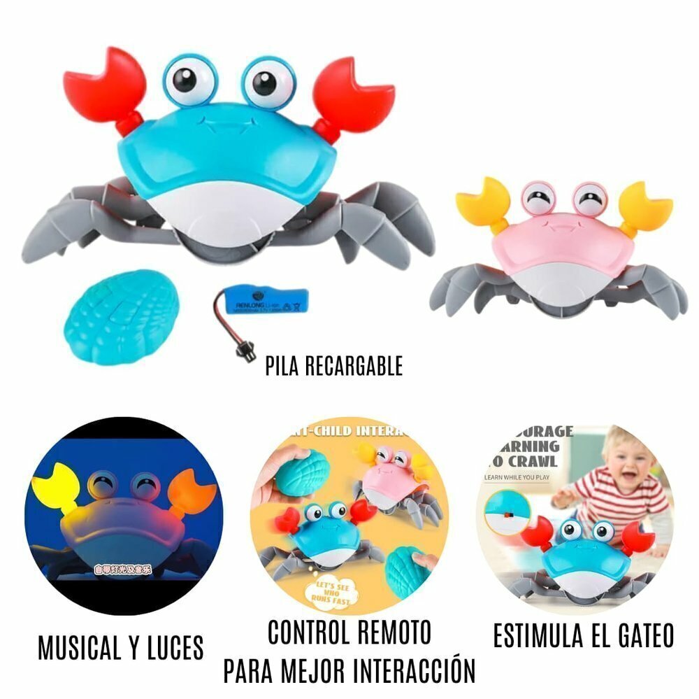 ¡Presentamos el Cangrejo Gateador Interactivo con Control! 🦀✨ Este juguete musical y electrónico es perfecto para estimular el desarrollo temprano de tus pequeños mientras se divierten.
